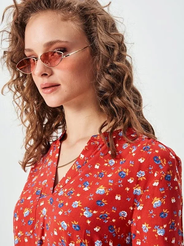 12306-RED BLUE FLOWERS PRINT