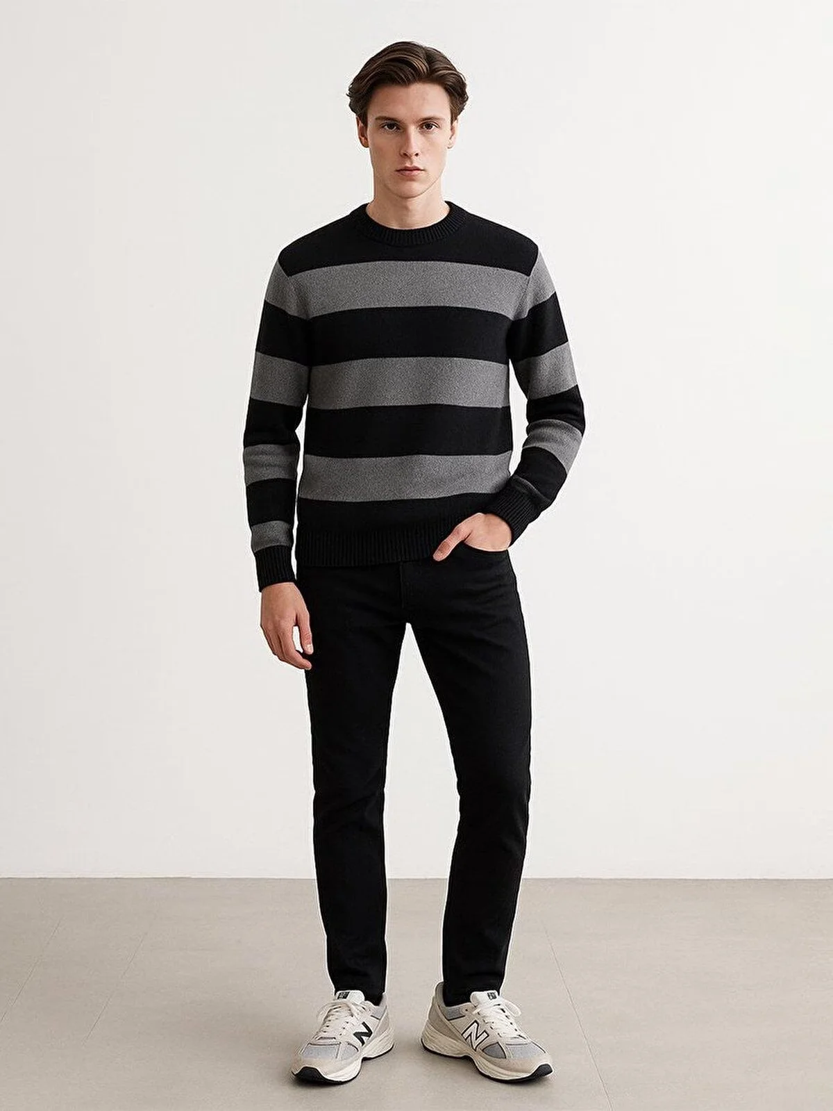 3937-DARK GREY MEL BLACK STRIPES